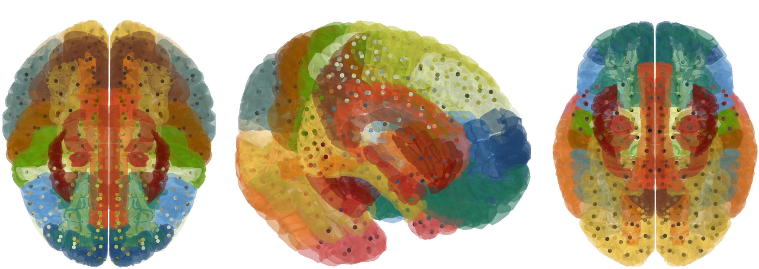 This figure shows the location of Fatal Familial Insomnia within the brain. Different colors represent various brain regions according to their labels, while the points indicate areas with a potential presence of Fatal Familial Insomnia.