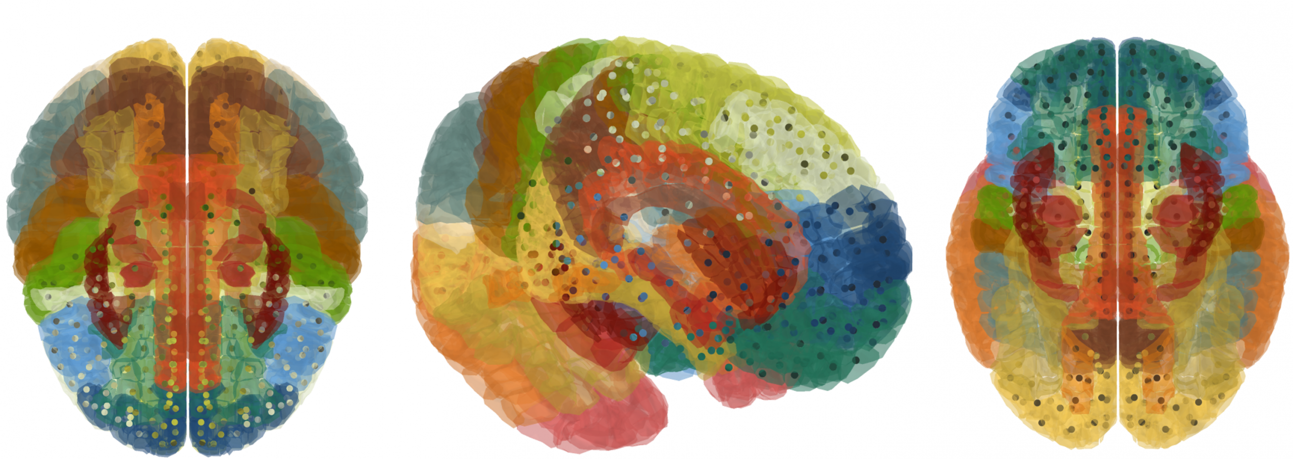 This figure shows the location of Kuru within the brain. Different colors represent various brain regions according to their labels, while the points indicate areas with a potential presence of Kuru.
