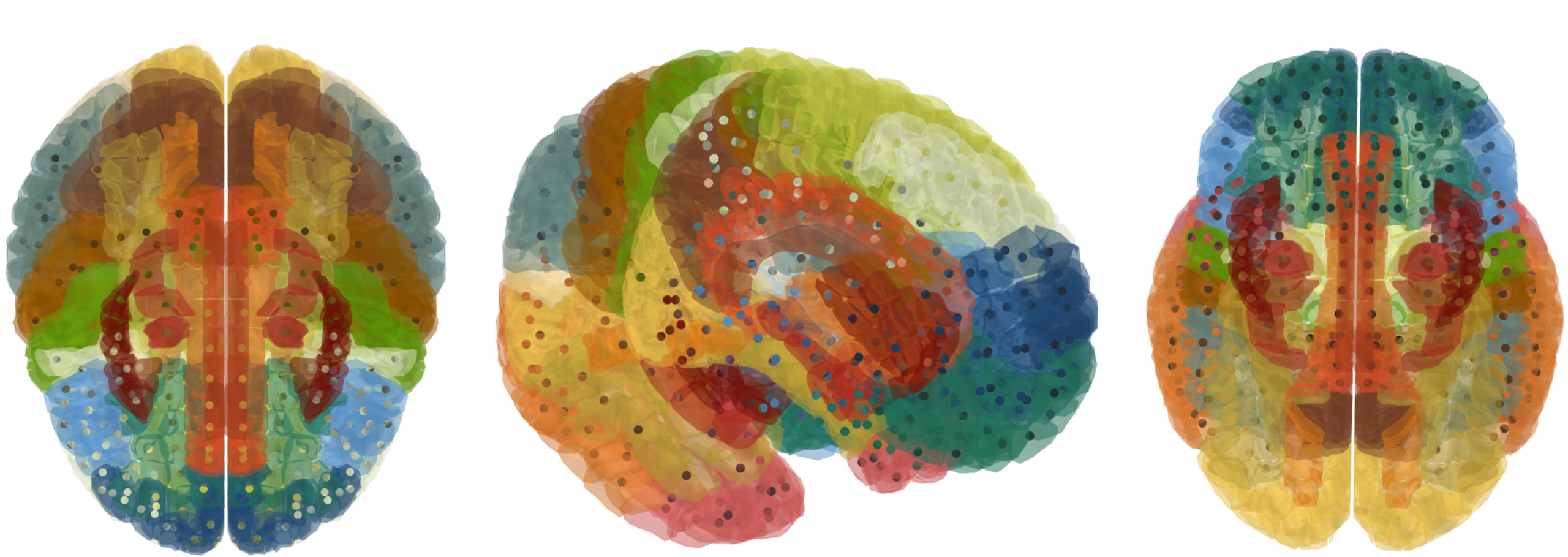 This figure shows the location of Pick’s Disease within the brain. Different colors represent various brain regions according to their labels, while the points indicate areas with a potential presence of Pick’s Disease.