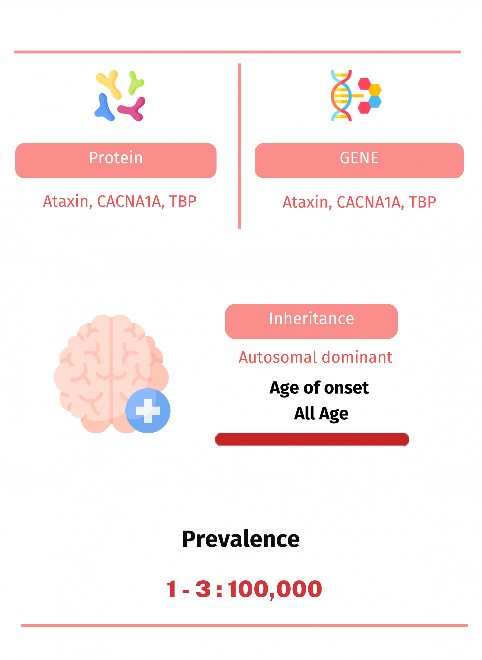 Spinocerebellar Ataxia (SCA) is a hereditary (autosomal dominant) neurodegenerative disorder. It primarily affects the cerebellum and spinal cord, leading to coordination and balance issues (ataxia). As a rare condition, SCA is classified under hereditary cerebellar ataxia.